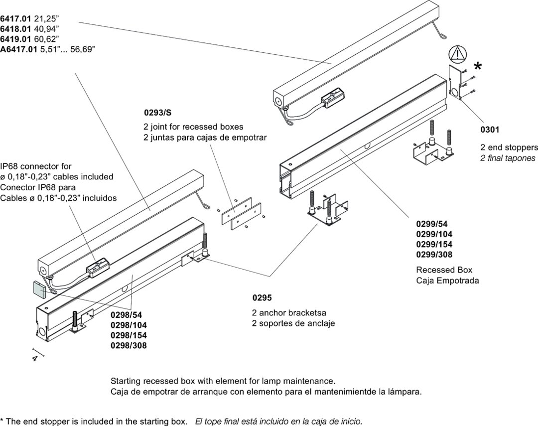 Installazione a pavimento o parete con possibilità di comporre linee luminose continue.