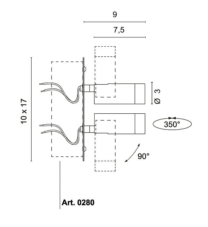 Die Blende ist um 90° in der horizontalen Ebene und um 350° in der vertikalen Achse drehbar.