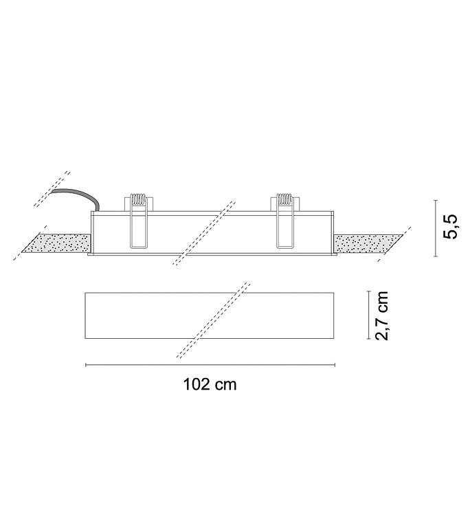 Lineare Lampe mit diffusem Licht IP40 für den Einbau mit einer sehr kleinen Methacrylatstruktur, integriertem LED-Schaltkreis, internem Kühlkörper aus eloxiertem Aluminium und Endkappen aus Methacrylat.