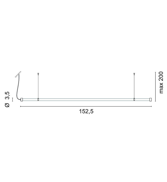 152,5 cm lange Hängeleuchte mit diffusem Licht, transparentem Methacrylat-Körper und Endkappen aus Aluminium.
