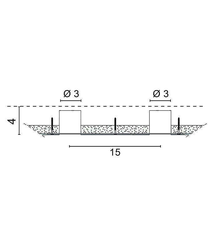 Vollständig verdeckte Schalung für die Installation von zwei Niedervolt- oder 230V-Leuchten an Gipskartondecken.