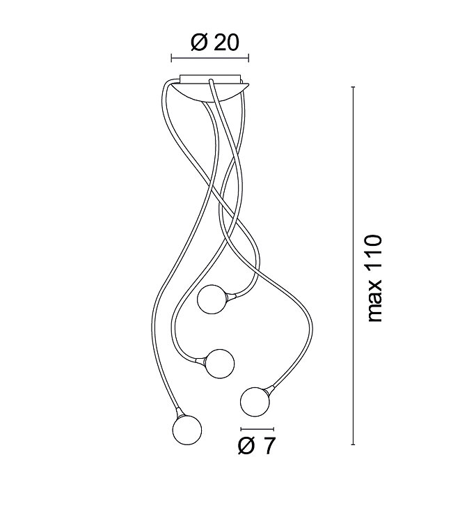 Verstellbare Deckenleuchte für diffuses Licht mit LED und integriertem Driver, gekennzeichnet durch den flexiblen Arm aus harmonischem Stahl, der mit einer wärmeschrumpfenden Hülle und Opalglas bedeckt ist.