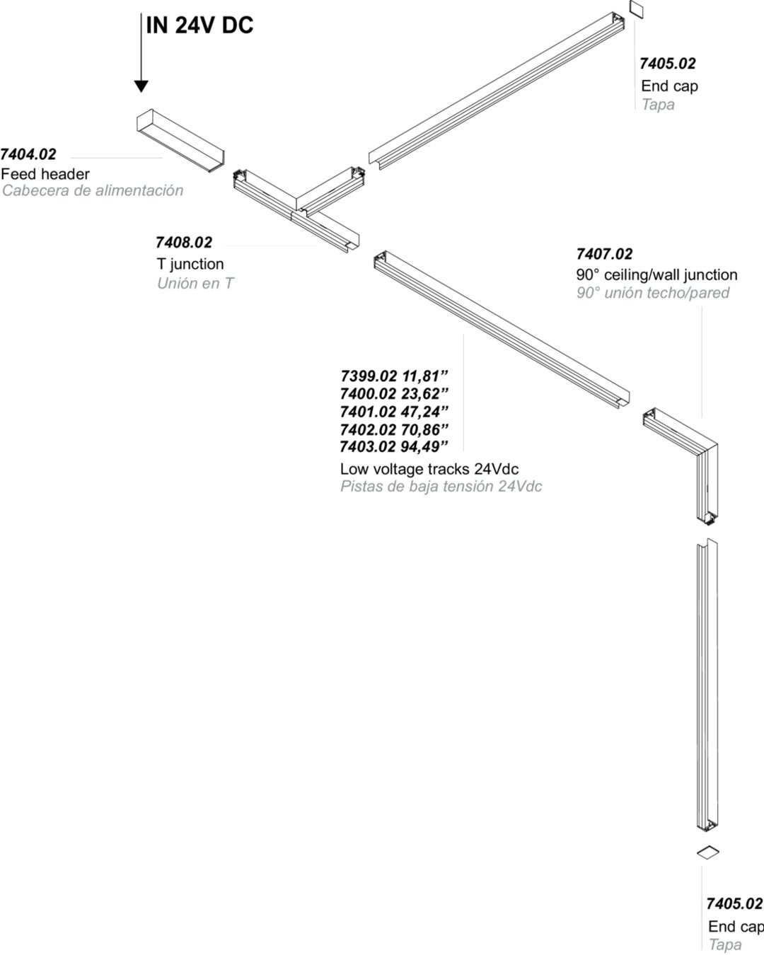 Low voltage 24V magnetic electrified track length 30cm for ceiling and wall applications.
