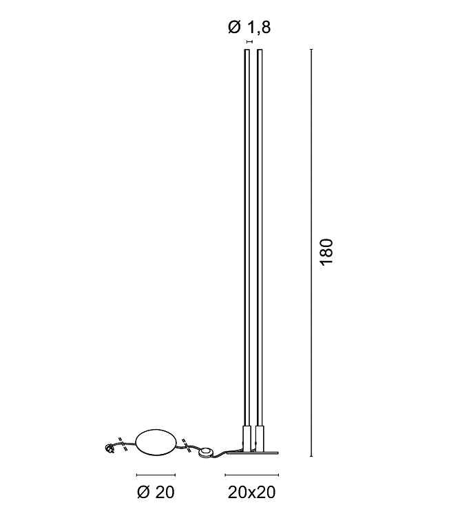 Adjustable and dimmable diffused floor lamp with aluminum die-cast body, opal polycarbonate diffuser, metal base, ABS end cap, 15W/m and 180 LED/m circuit with CRI>90, complete with dimmer on a 2.5-meter black cable.