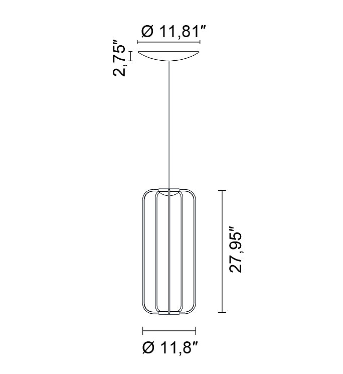 Suspension lamp with diffused and indirect light characterized by the structure made of slender calendered aluminum profiles, opal polycarbonate diffuser, LED circuit with CRI>90 and ceiling rose with integrated driver.