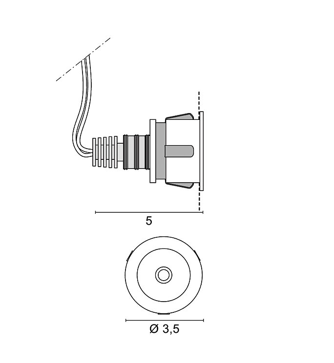 Micro foco empotrable IP44 para luz directa con fuente LED integrada de 500mA, estructura de aluminio y tres aperturas ópticas de 15°, 25° y 45°.