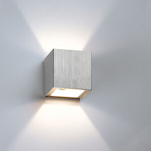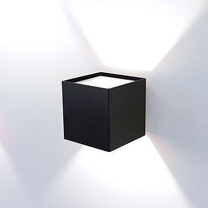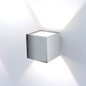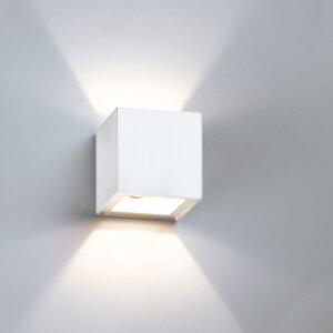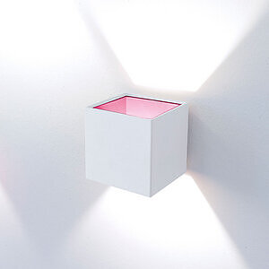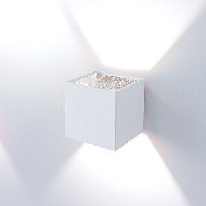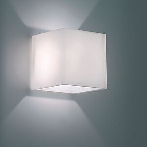 Appliques caractérisées par leur forme cubique, avec cadre en aluminium ou en verre extra-clair peint en blanc et douille avec prise G9 ou avec module LED COB.