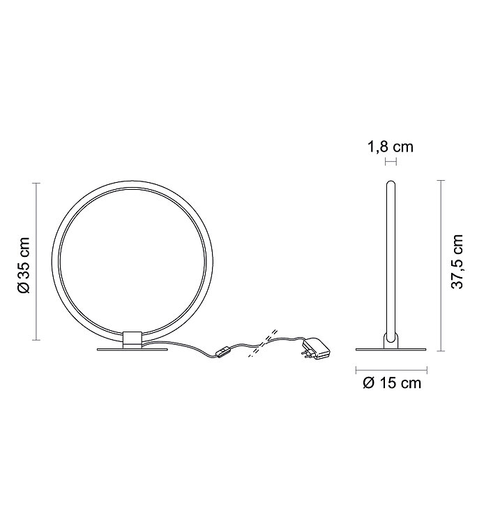 Lampe de table à lumière diffuse avec corps en aluminium extrudé calandré, diffuseur en polycarbonate opale, circuit de 18W/m et 180 LEDs/m avec CRI>90 et gradateur PUSH sur câble.
