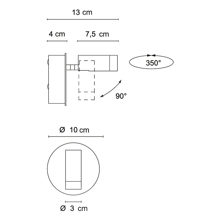 L'iris pivote de 90° sur le plan horizontal et de 180° sur l'axe vertical.