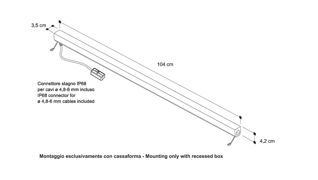 Système modulaire pour l'éclairage extérieur, IP67 et IK10, avec corps en méthacrylate coextrudé transparent et partie diffusante en opaline, coffrage et embouts en aluminium moulé sous pression anodisé avec traitement renforcé d'anodisation pour l'extérieur.