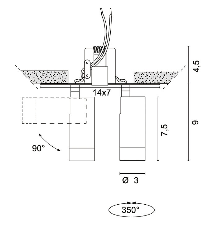 Mini spots encastrés orientables, pour installation sur faux-plafonds en plaques de plâtre, avec corps en aluminium, source LED COB 350mA intégrée avec lumière d'accentuation ou diffuse.
