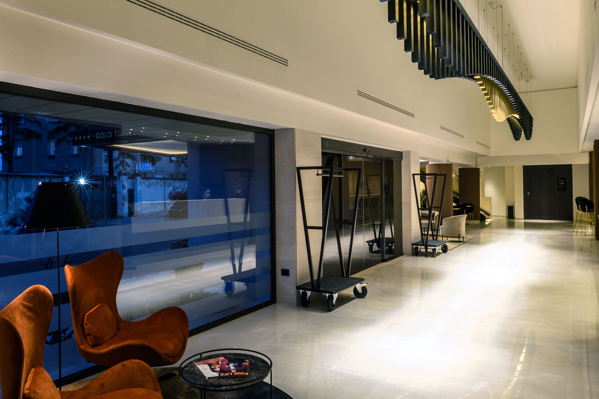 Entrare nella hall del Gold Tower Hotel significa essere avvolti da una presenza luminosa che definisce immediatamente il tono dell’esperienza: lusso contemporaneo, energia, raffinatezza e un forte legame con il territorio. I riflessi dorati creano un’atmosfera equilibrata e sofisticata, dove architettura, arte e ospitalità dialogano in armonia perfetta. Gold Wave non è soltanto un elemento di design: è un simbolo di identità. Una luce che racconta il carattere dell’hotel, il suo senso di accoglienza e la capacità di trasformare uno spazio di passaggio in un’esperienza memorabile.