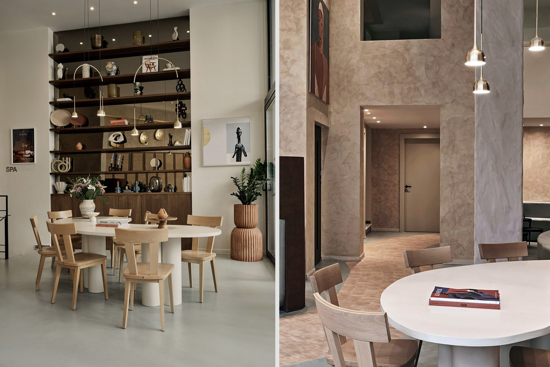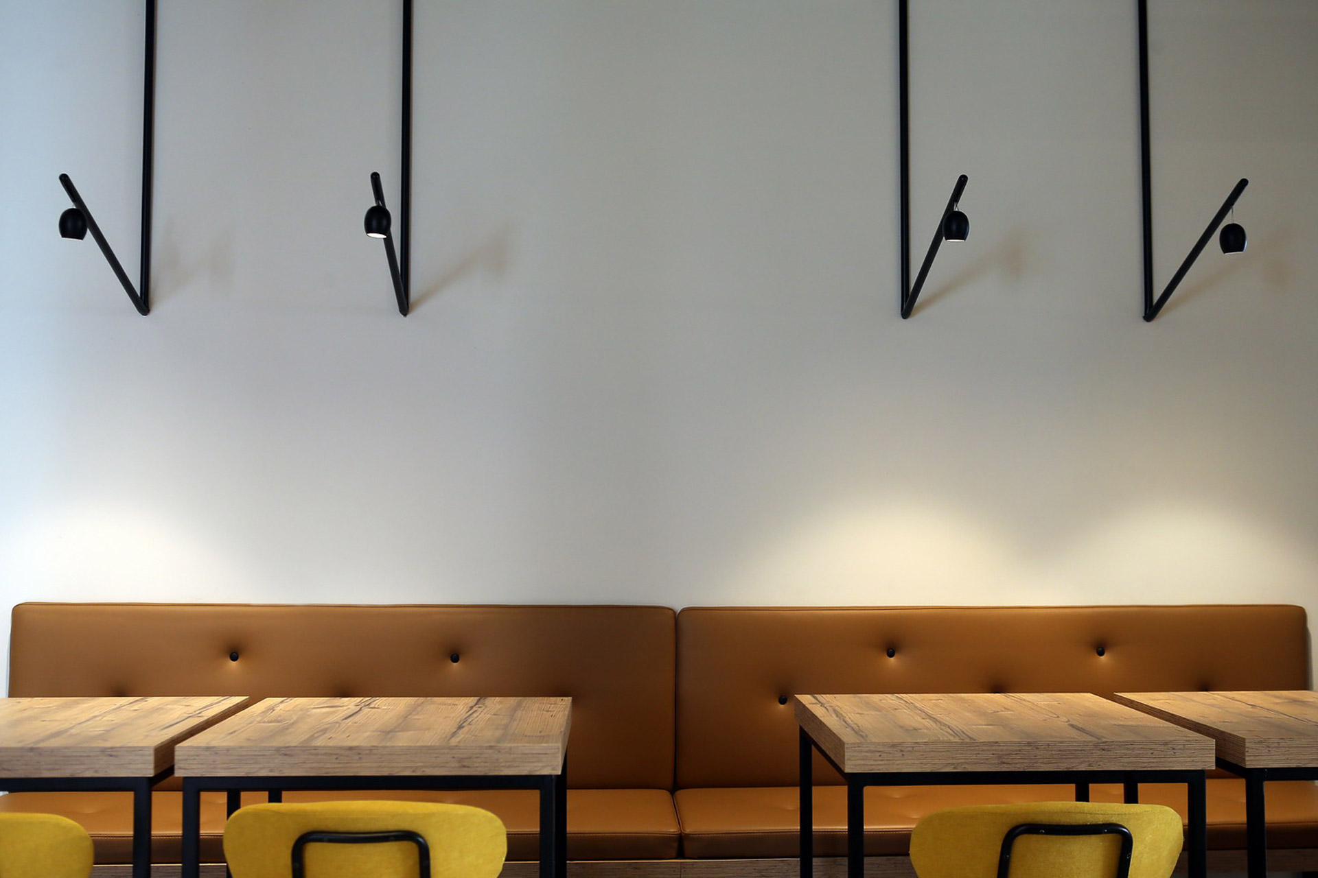 Nel ristorante del Meg Lifestyle Hotel di Riccione, progettato dall’architetto Eleonora Denicolò, le sospensioni Mork sono state completamente ripensate: invece di scendere dal soffitto, sono ancorate a un profilo metallico a L fissato alla parete, creando un effetto di sospensione architettonica e definendo con precisione la zona tavolo. Un intervento su misura che dimostra come la luce possa modellarsi al progetto, adattandosi allo spazio e potenziandone l’identità.