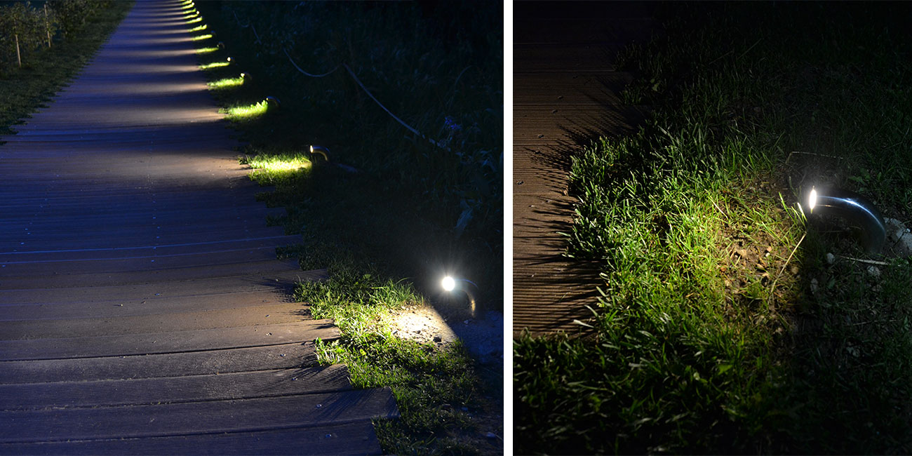 Per quanto riguarda l’aspetto della sicurezza è fondamentale illuminare bene alcune zone chiave negli spazi esterni: i percorsi pedonali, i punti di accesso e le aree di intrattenimento e i confini.