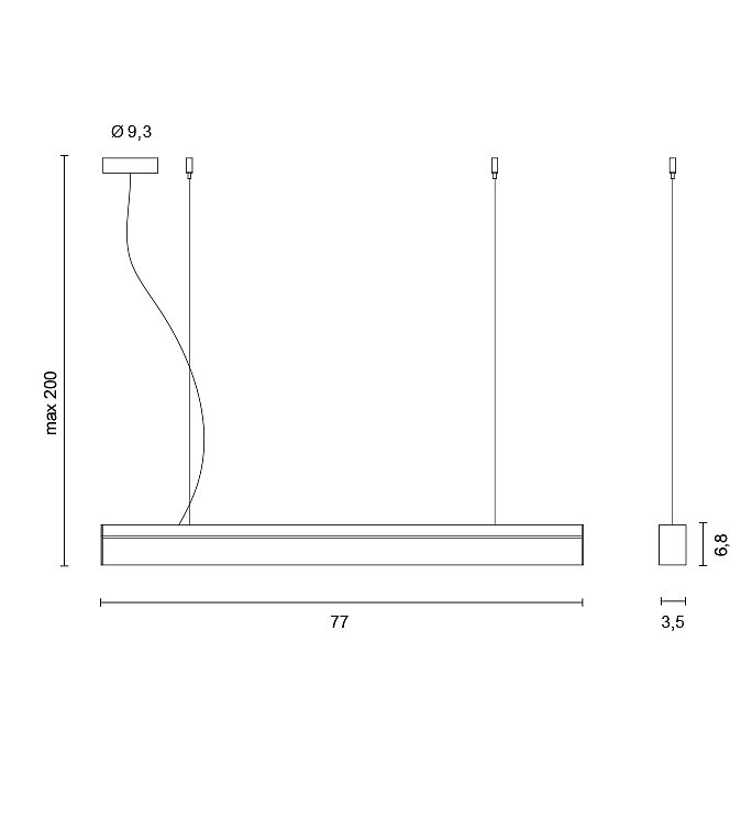 Rail suspension è realizzabile in varie lunghezze modulari da 77 cm a 302 cm e su richiesta è disponibile con alimentatori dimmerabili per un controllo PUSH, 1...10V o DALI.