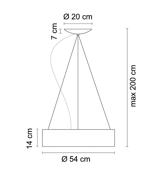 Lampada a sospensione a luce diffusa con paralume circolare in tessuto e PVC autoestinguente, struttura in alluminio, diffusore in policarbonato opalino, rosone con driver integrato e circuito da 18W/mt e 180 LED/mt con CRI>90.