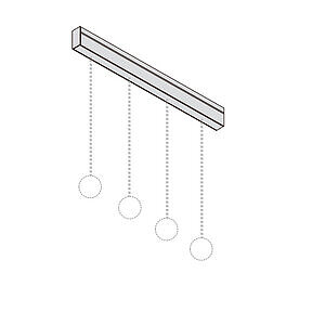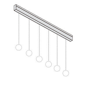 Per esempio, partendo da un’unica alimentazione, è possibile guidare il sottile cavo coassiale disegnando un percorso sul soffitto e fare scendere la sospensione nella posizione voluta.
