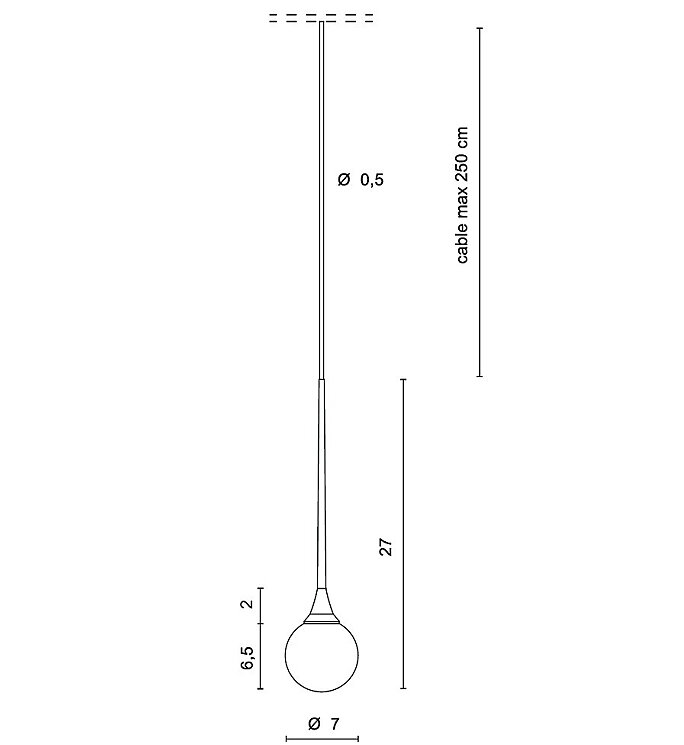 Sistema di piccole lampade a sospensione a luce diffusa con sorgente LED integrata a 350mA, corpo in alluminio, diffusori in vetro opalino soffiato e acidato e cavo coassiale di 250 cm.