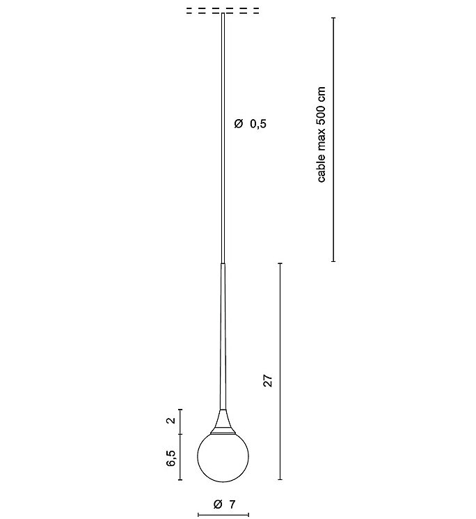 Sistema di piccole lampade a sospensione a luce diffusa con sorgente LED integrata a 350mA, corpo in alluminio, diffusori in vetro opalino soffiato e acidato e cavo coassiale di 500 cm.