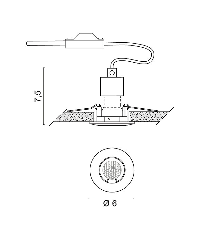 Mini faretto da incasso a luce diretta con corpo in pressofusione di alluminio e portalampada con attacco per lampadine GU10 3W per l'installazione su controsoffitti in cartongesso.