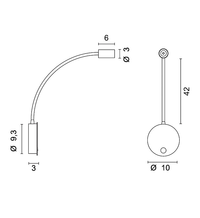 Lampada da parete flessibile e orientabile a luce diretta con struttura in metallo e diffusore in alluminio. Il LED di potenza, il driver e l’interruttore sono integrati.