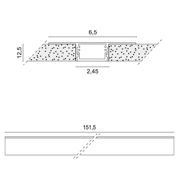 Profilo in alluminio da incasso a “scomparsa totale” per installazioni su controsoffitti in cartongesso.