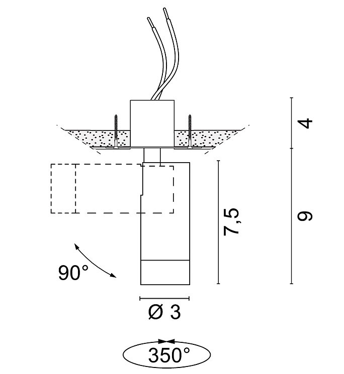 Mini proiettore orientabile da incasso a luce d’accento o diffusa con sorgente COB LED integrata ad elevate prestazioni con corpo in alluminio per installazioni su controsoffitti in cartongesso mediante le casseforme EUREKA.