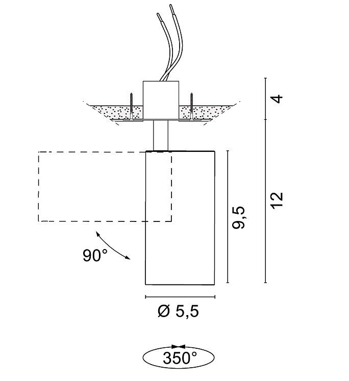 Proiettore orientabile da incasso a luce diretta con corpo in alluminio, portalampada con attacco per lampadine GU10, per installazioni su controsoffitti in cartongesso mediante le casseforme EUREKA.