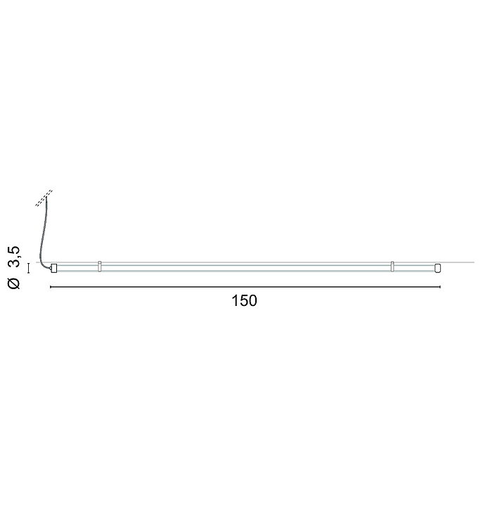Lampada scorrevole su cavo d'acciaio a luce diffusa della lunghezza di 152,5 cm caratterizzata da un’emissione luminosa a 360 gradi, con corpo in metacrilato trasparente e tappi di chiusura in alluminio.
