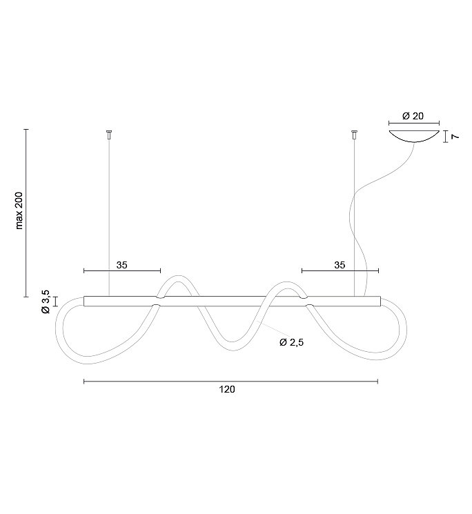 La lampada si distingue per il suo particolare gioco materico e visivo: un tubo luminoso in silicone, flessibile e continuo, attraversa un tubo in alluminio verniciato, creando un raffinato effetto onda che conferisce movimento e carattere all’elemento illuminante.