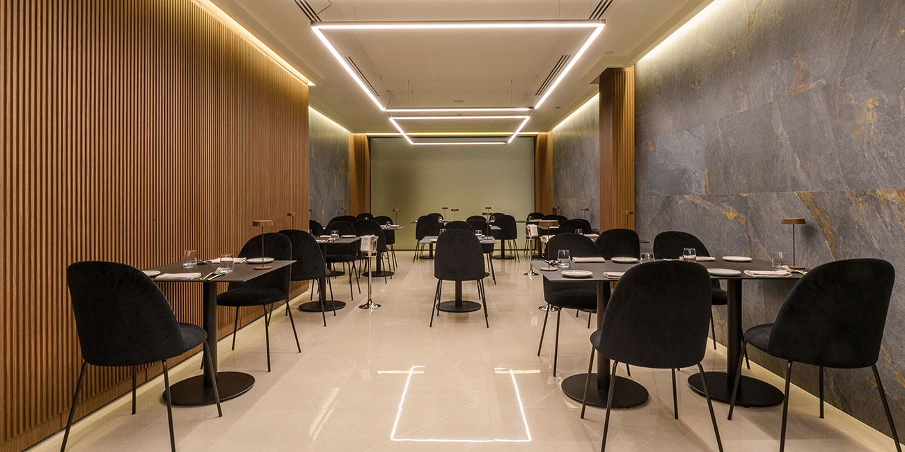 Именно в этих зонах необходимо больше света, чтобы направлять клиентов к их столику и давать им общее представление об обстановке, а также способствовать безопасности и избегать несчастных случаев.