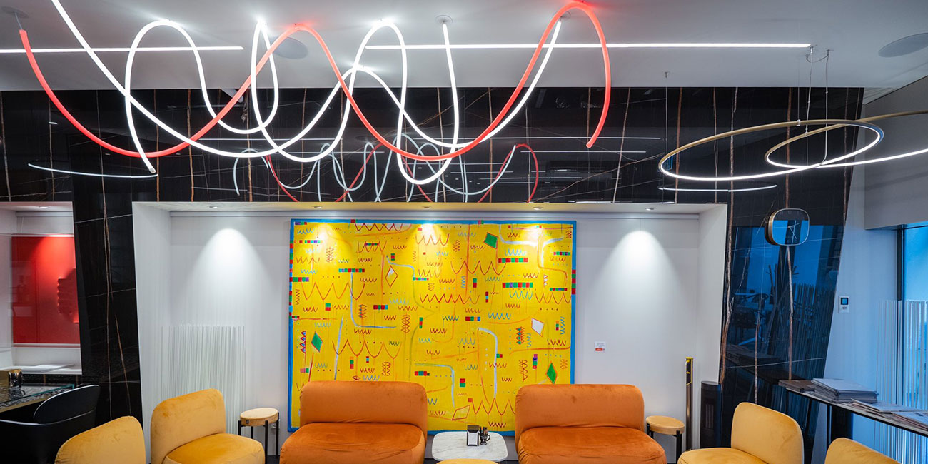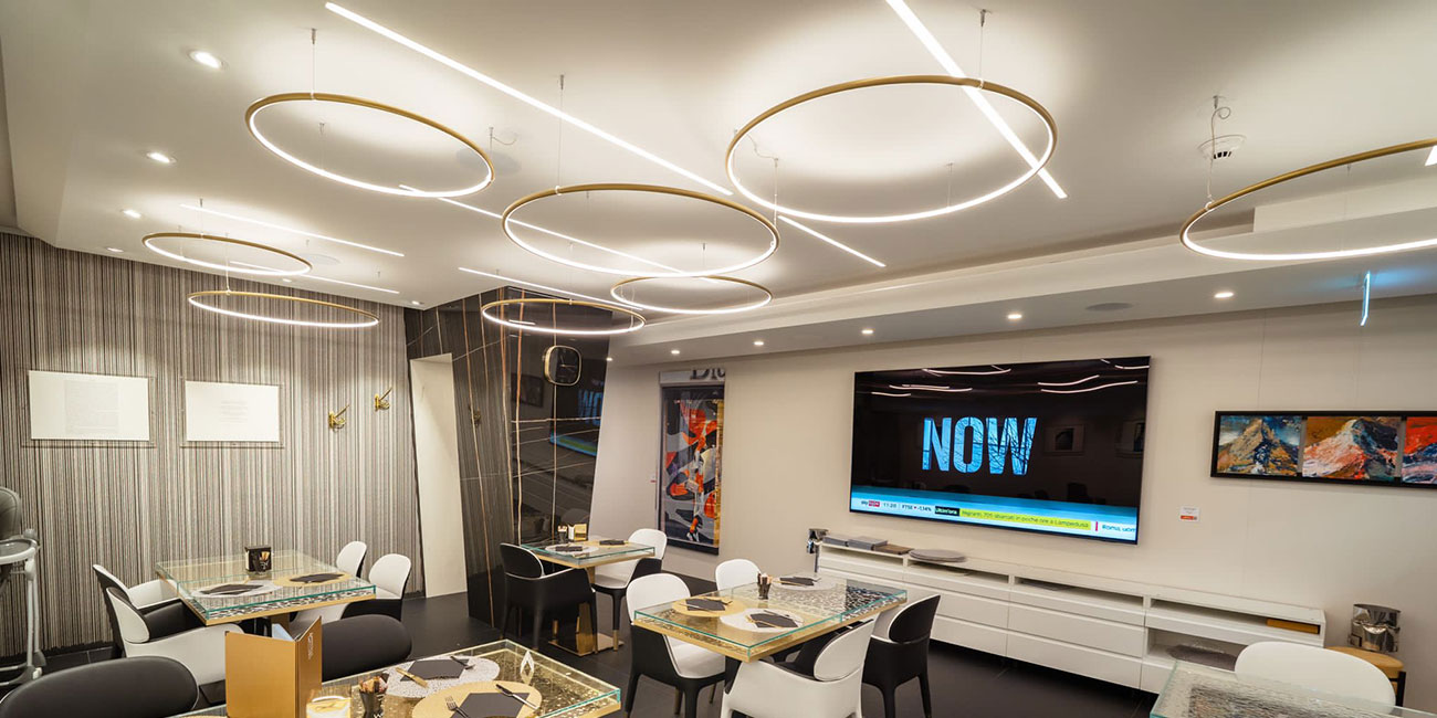 С одной стороны, покупатель должен легко ориентироваться в помещении, а для этого окружающий свет, функциональное освещение и акцентное освещение должны работать вместе и создавать контрасты яркости для создания фокусных точек на зонах, которые необходимо подчеркнуть.