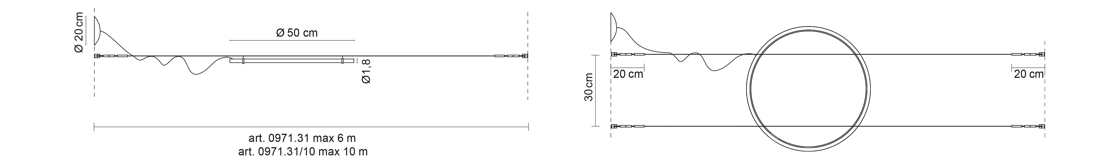 По желанию заказчика композиции, предусматривающие соединение нескольких корпусов с подводящими кабелями, идущими от светильника к светильнику, могут поставляться также для светильников диаметром 35, 70, 100, 150, 200 и 300 сантиметров.
