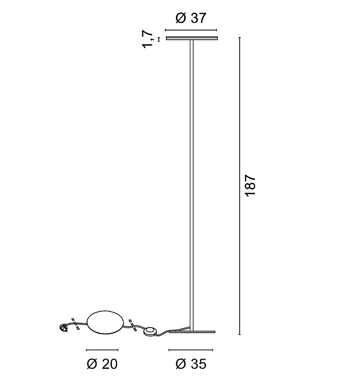 Диммируемый торшер непрямого света с эссенциальным дизайном с корпусом из окрашенного алюминия и матовым рассеивателем из метакрилата.
