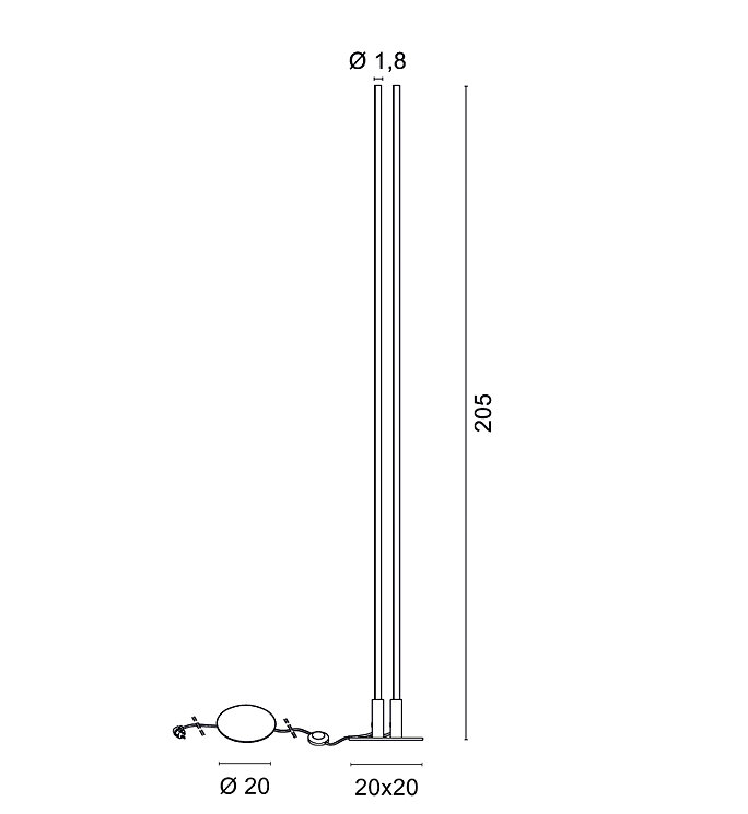 Регулируемый и диммируемый торшер рассеянного света с алюминиевым корпусом, опаловым поликарбонатным рассеивателем, металлическим основанием, торцевой крышкой из ABS, мощностью 15 Вт/м и 180 LED/м с CRI>90, в комплекте с диммером на 2,5-метровом черном кабеле.