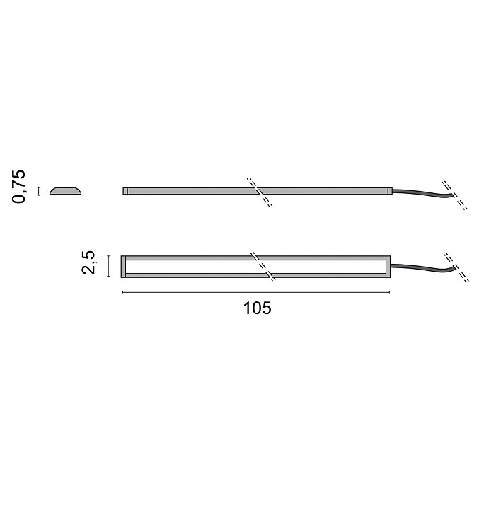 Линейный профиль из экструдированного алюминия с рассеянным светом со встроенным светодиодом, опаловым рассеивателем из поликарбоната, торцевыми заглушками из ABS и кабелем питания длиной 200 см.