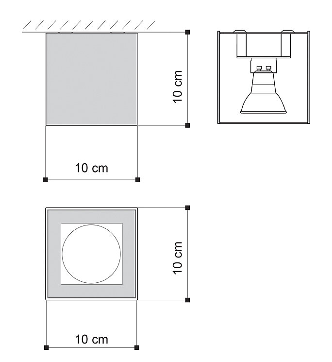 Потолочный светильник прямого света с алюминиевым корпусом и патроном с цоколем GU10.