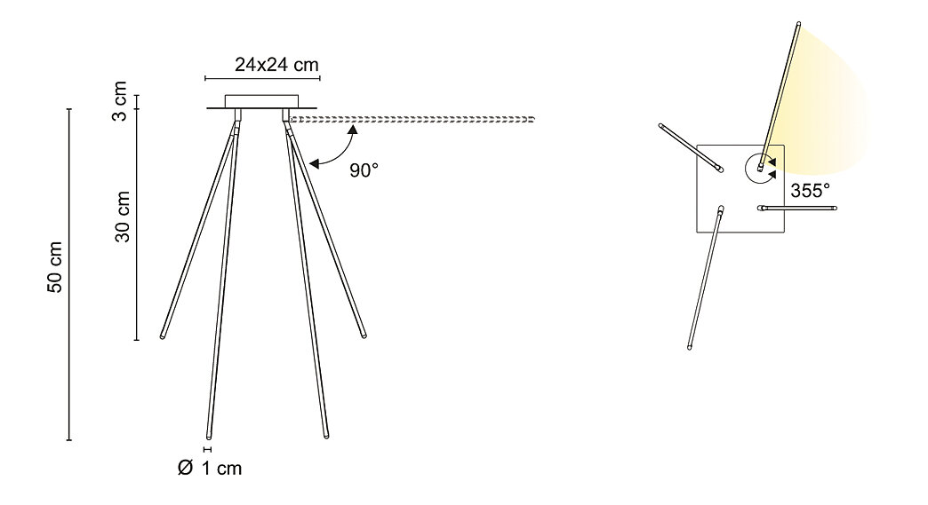 Штанги двух разных длин независимы и могут быть индивидуально выровнены. Это позволяет создавать бесконечные конфигурации и адаптировать светильник к любым требованиям прямого и непрямого освещения.