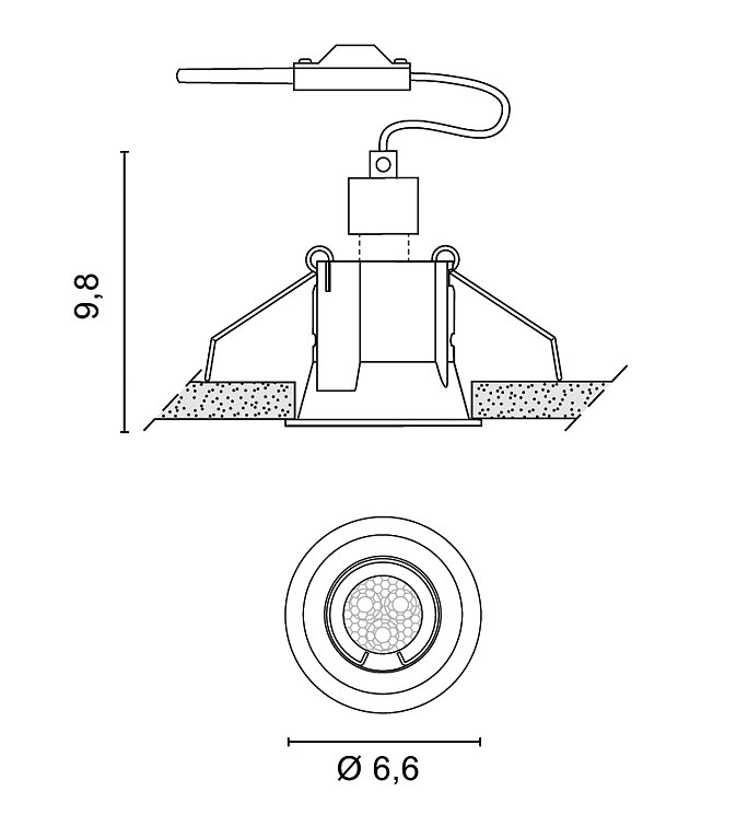 Встраиваемый точечный светильник прямого света "mini trim" с корпусом из литого алюминия, очень маленьким фланцем и патроном для лампы с цоколем 3W GU10 MINI для установки на гипсокартонные подвесные потолки.