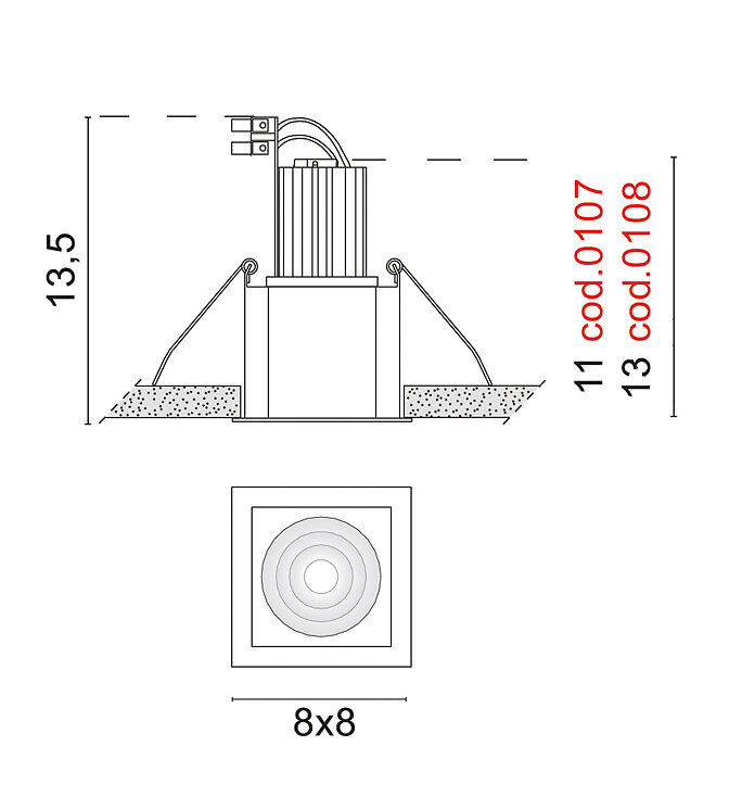 | Квадратное утопленное отверстие см: | 7.00 cm |