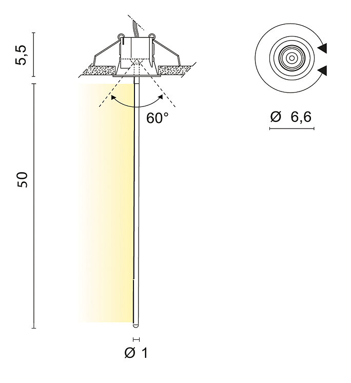 Световой профиль можно поворачивать вокруг своей оси и наклонять на 60°.