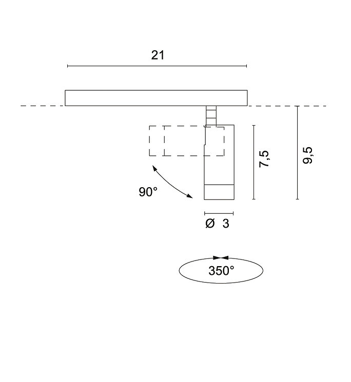 Миниатюрный регулируемый проектор Track 48V с алюминиевым корпусом и встроенным высокоэффективным светодиодным источником COB LED с прямым и акцентным светом.