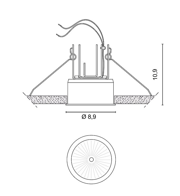 Встраиваемый мини-точечный светильник для акцентного или рассеянного освещения со встроенным светодиодным источником COB 500 мА, алюминиевым корпусом и круглой рамкой, внутренним отражателем из поликарбоната и аксессуарами для установки на гипсокартонные потолки.