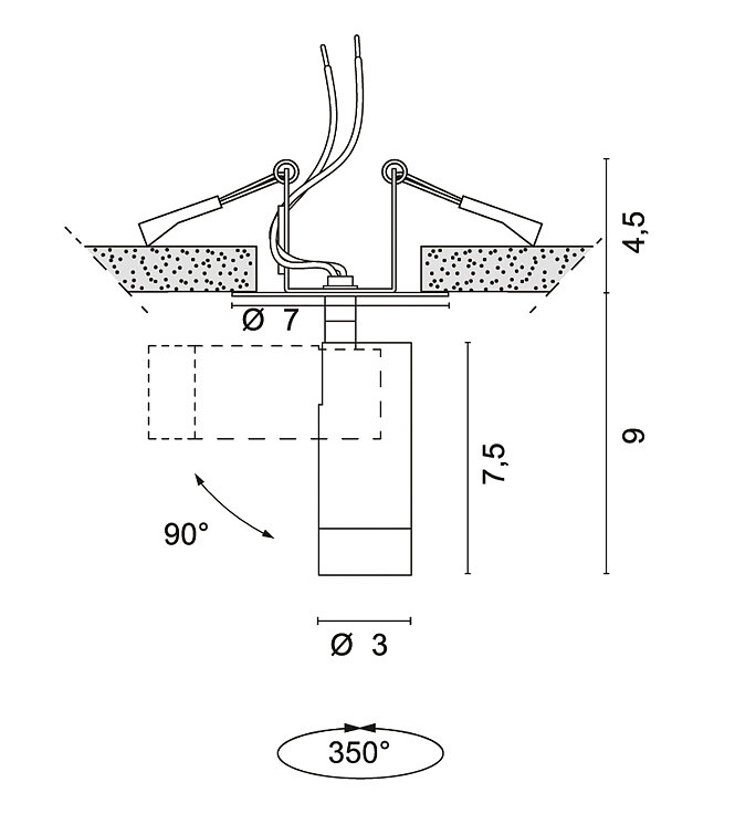 Миниатюрный регулируемый встраиваемый прожектор для установки на гипсокартонные подвесные потолки, с алюминиевым корпусом, встроенным светодиодным источником 350 мА COB с акцентным или рассеянным светом.