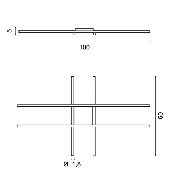 Потолочный и настенный светильник рассеянного и непрямого света с корпусом из алюминиевого литья под давлением, опаловым рассеивателем из поликарбоната, цепью из 18 Вт/м и 180 светодиодов/м с CRI>90 и встроенным драйвером.