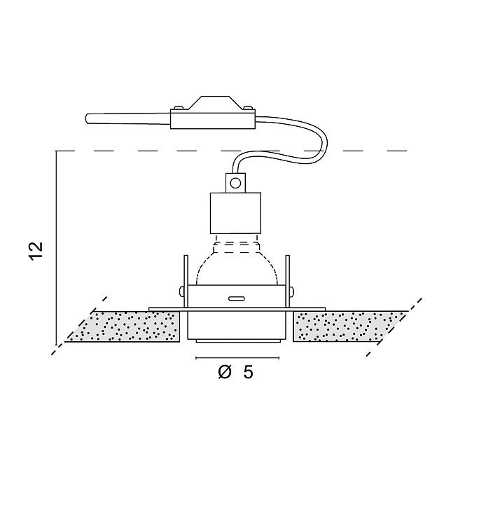 Встраиваемый точечный светильник прямого света без окантовки для "абсолютно скрытых" гипсокартонных подвесных потолков с корпусом из оцинкованного железа и патроном для лампы GU10.