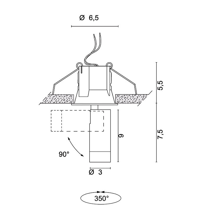 Миниатюрный регулируемый встраиваемый прожектор для монтажа в гипсокартонный потолок, с корпусом из литого алюминия и встроенным светодиодным источником 350 мА COB для прямого и акцентного освещения.