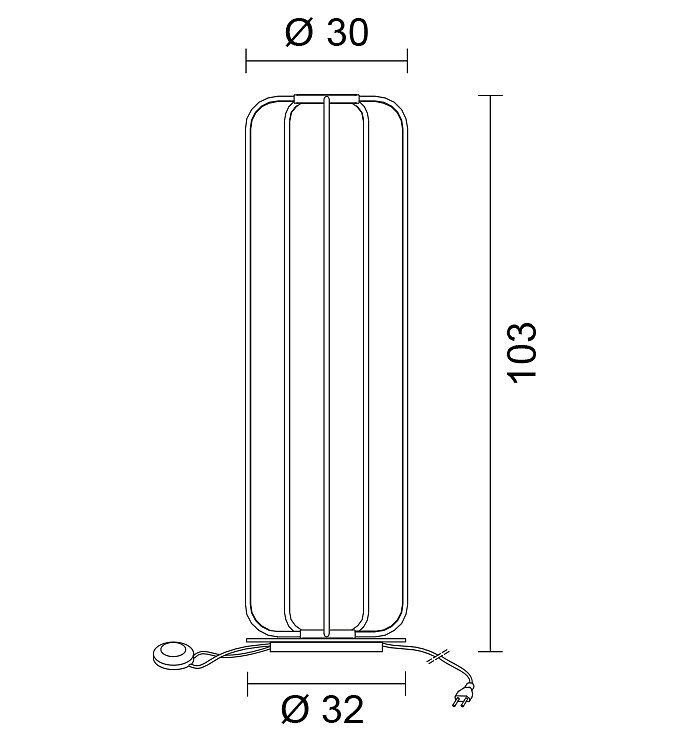 Диммируемый торшер, дающий рассеянный и непрямой свет, характеризующийся структурой из тонких каленых алюминиевых профилей, опаловым поликарбонатным рассеивателем, светодиодной схемой с CRI>90, встроенным блоком питания и диммером PUSH на кабеле.
